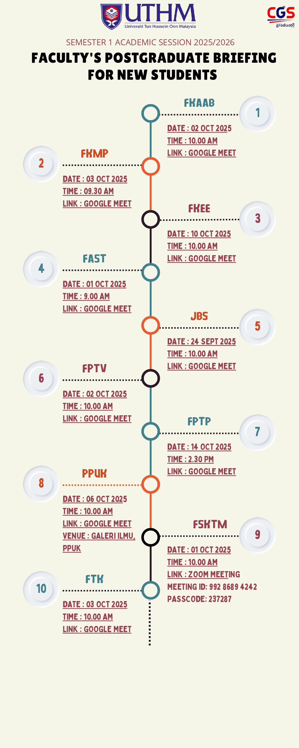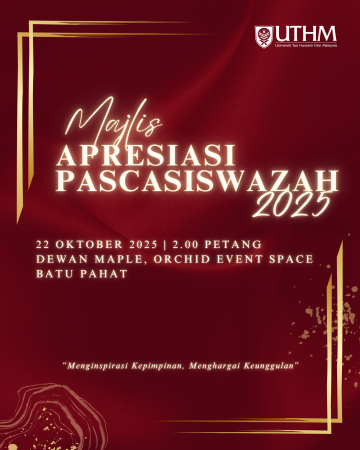 >> Students can fill in the application form available at the counter of Centre for Graduate Studies, UTHM.
